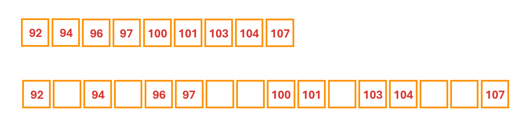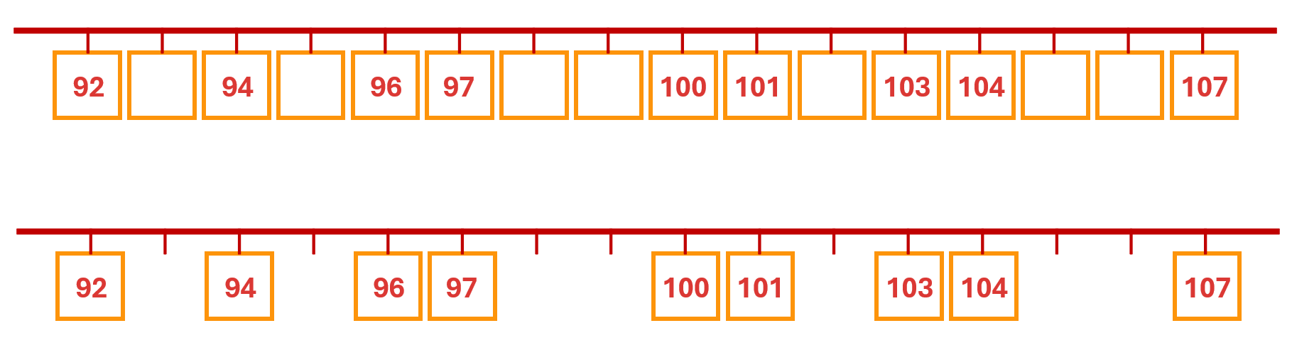Use evenly spaced blank sticky/notes cards to represent any missing numbers between the smallest and largest numbers on the number track.