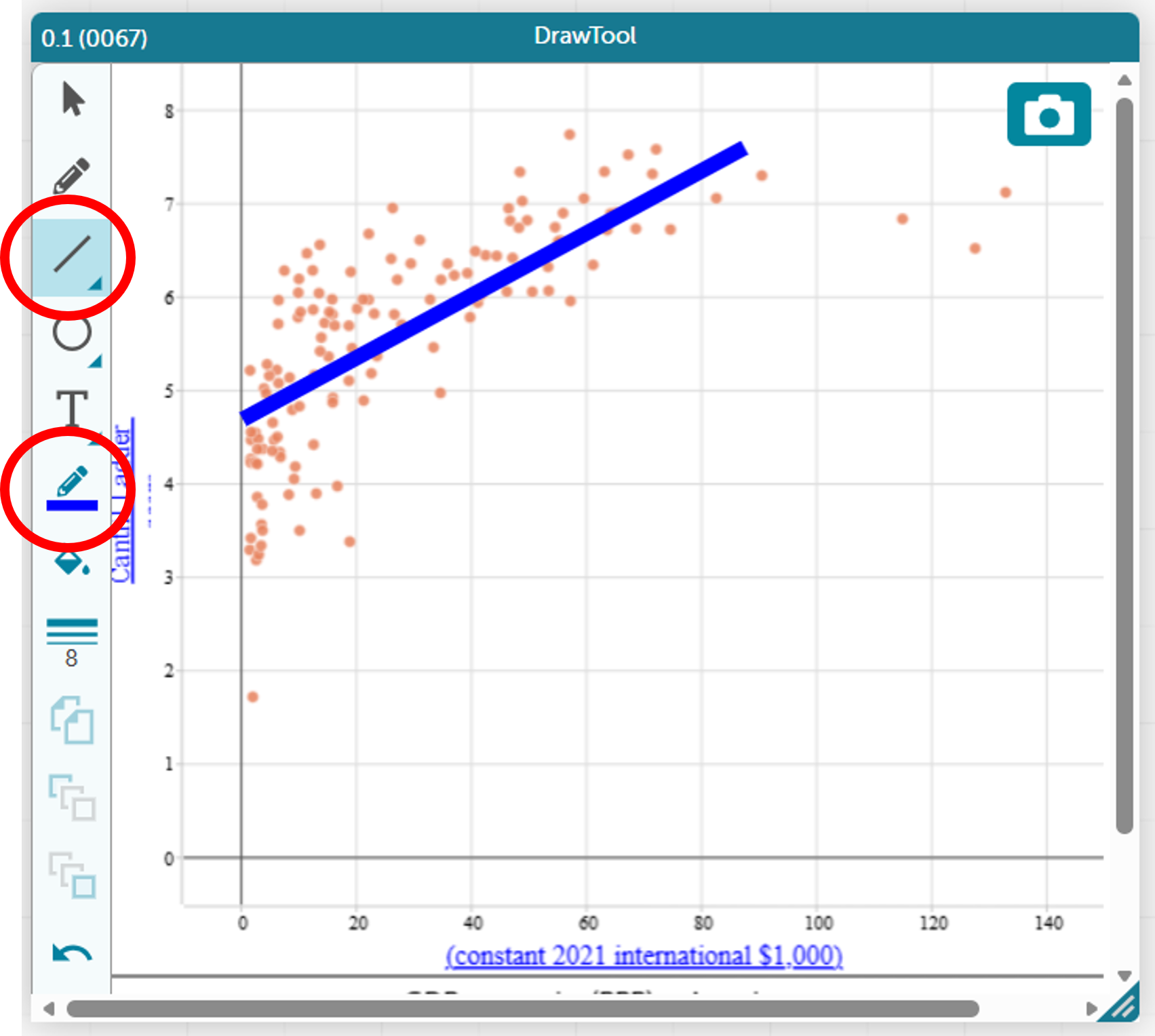 Ask students to use the drawing tool in CODAP to sketch a straight line that they think represents the overall pattern in the data. Allow students to compare their lines with a partner and discuss any differences.