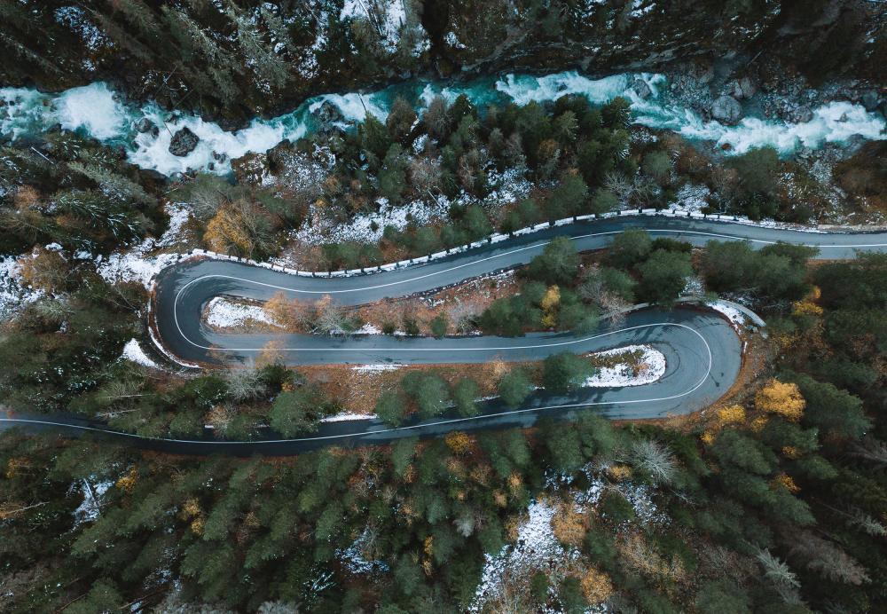 When a gradient is too steep for a direct path, one common solution is to zig-zag the route. Switchbacks increase the horizontal distance travelled, which brings the gradient (rise divided by run) down even if the total height climbed stays the same.