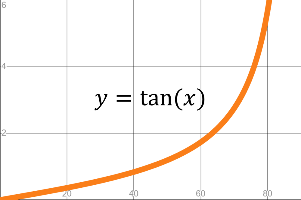 On a road sign, both might appear as change of “5 units” ($5^\circ$ or 5%), yet the effect on steepness is not comparable. This is because angle and steepness have a nonlinear relationship. As the tangent graph shows, as angles approach $90^\circ$, even small increases in angle produce much larger increases in gradient.