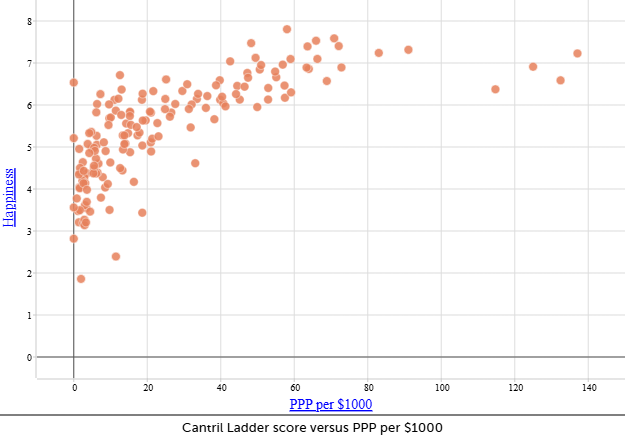 Explain to students that throughout this sequence they will look more closely at wealth and investigate whether being wealthier is associated with a country being happier.