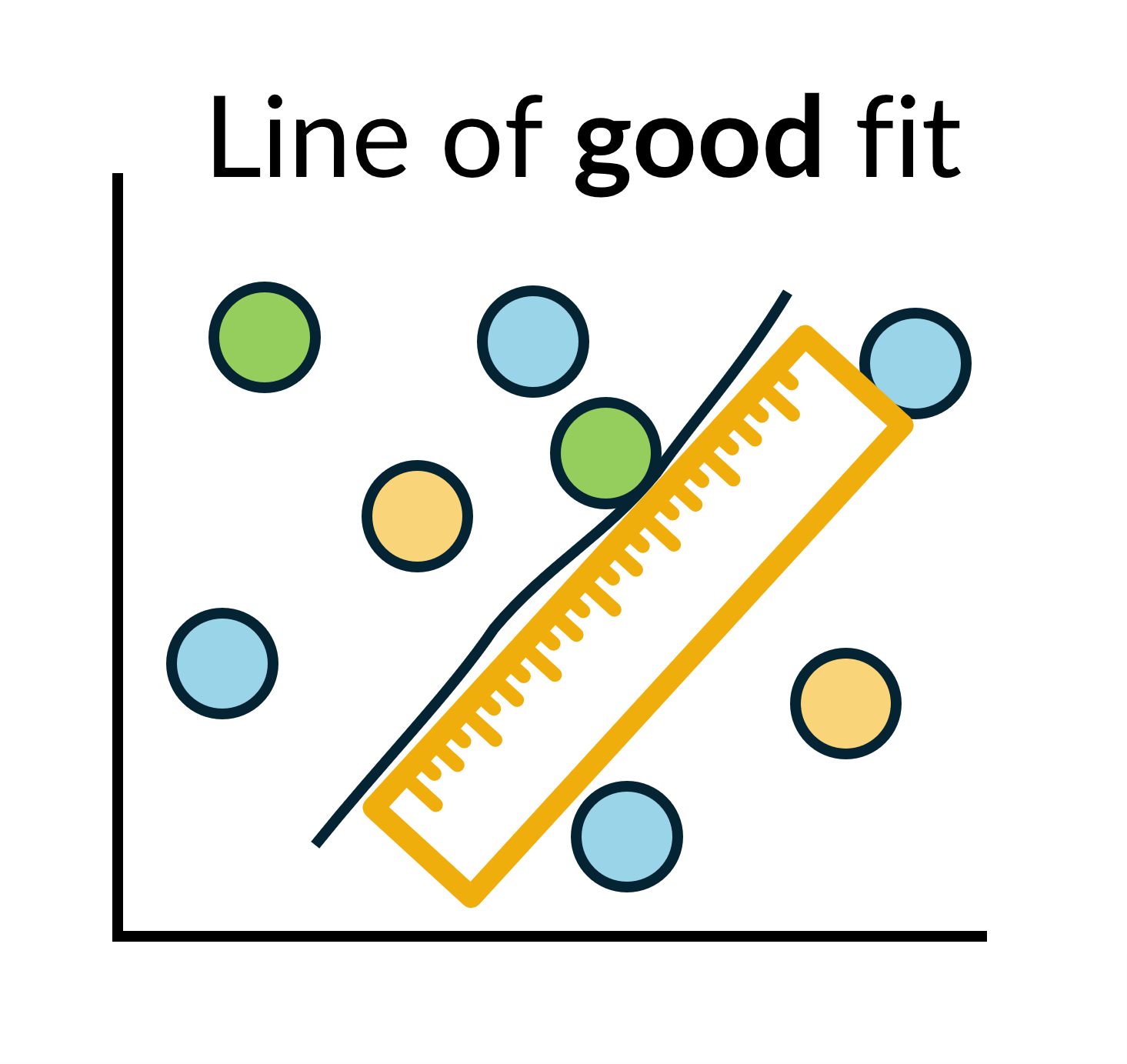 The term “line of good fit” is sometimes used interchangeably with “line of best fit”. In this lesson, a “line of good fit” refers to a straight line drawn by hand to model an overall trend, while a “line of best fit” (also known as a least squares regression line) is calculated using a formal mathematical method to determine an optimal straight-line model.