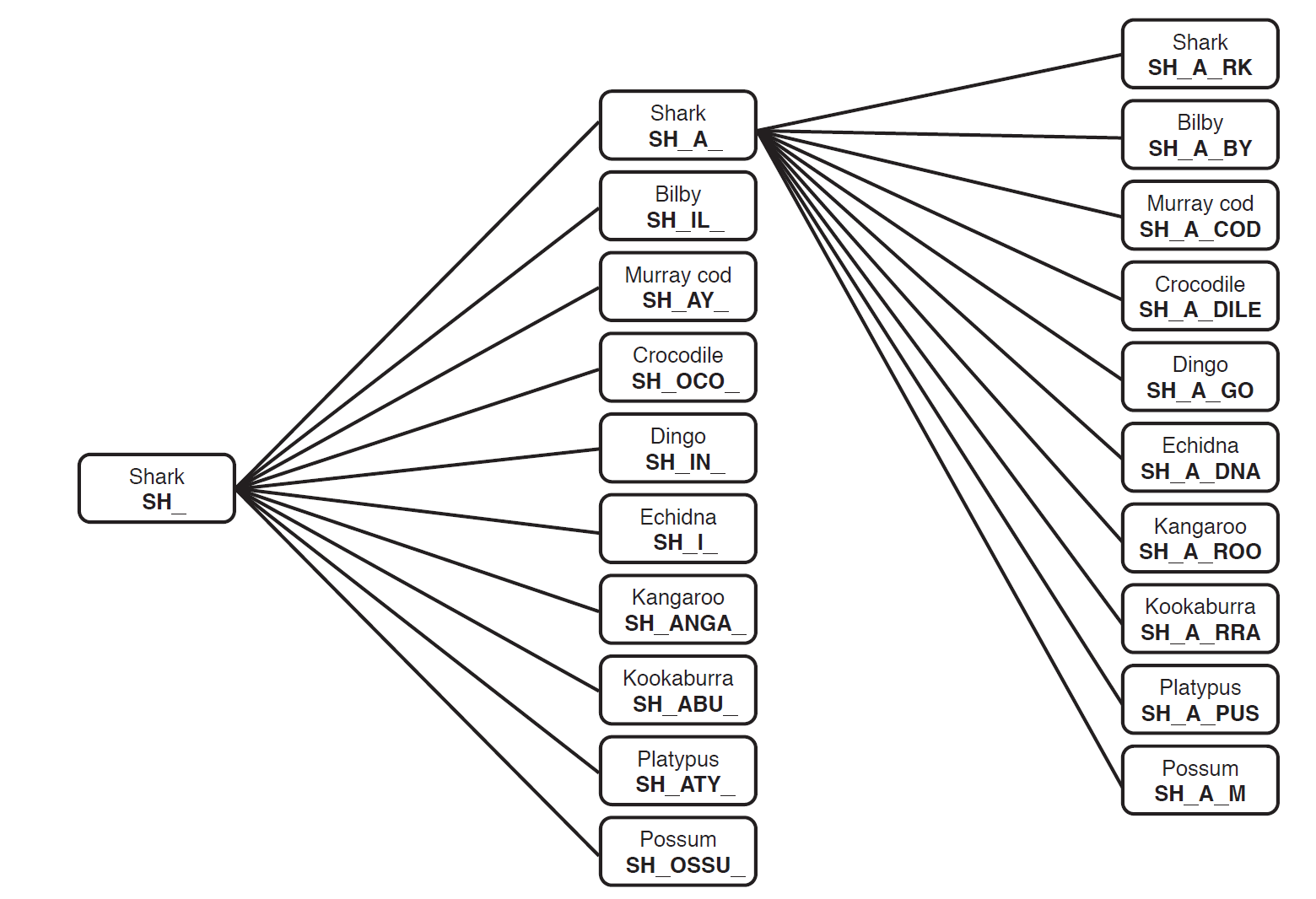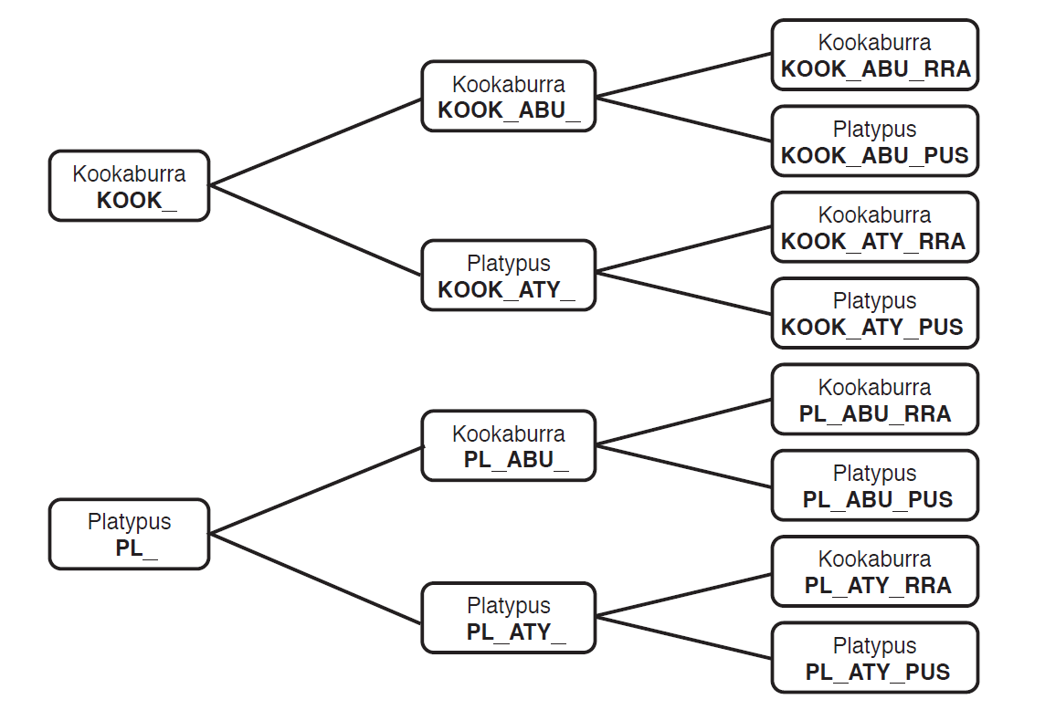 Explain that the class will work together on a simpler problem by creating a human tree diagram with just two animals: the kookaburra and the platypus. Slides 3-13 of What is a Plocoroo? PowerPoint might be used to support this activity.