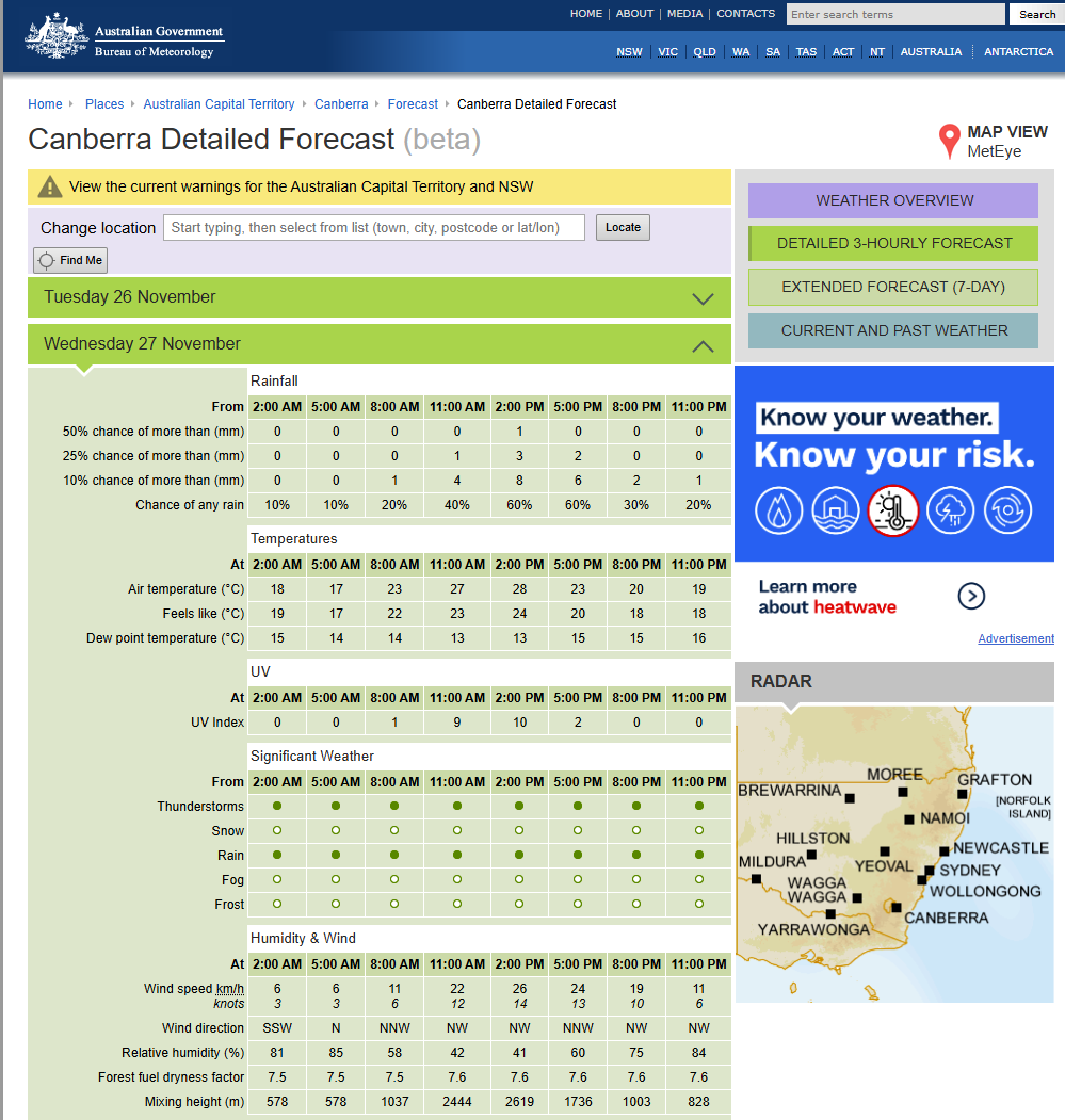 - The data will be collected from the Bureau of Meteorology website.