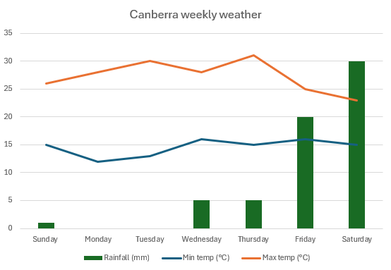 - Look at the different representations used by the Bureau of Meteorology on their website. Much of their information is represented in tables, with some temperature data represented as a line graph and rainfall represented as a column graph.