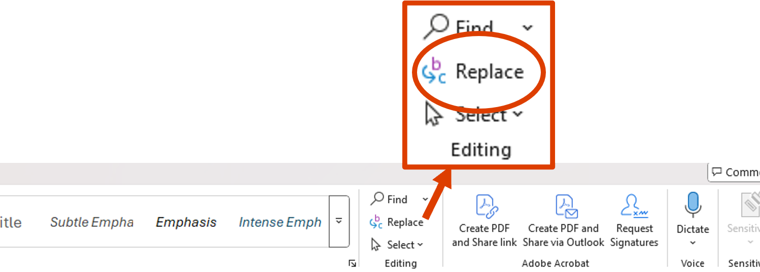 Paste encrypted text into a new Word document. Open Find and Replace which can be found in the editing tools on the Home ribbon (or by using the Ctrl-H shortcut). | ![]() |