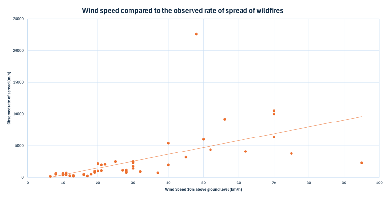Explain to students that they will need to identify the relevant data from the table, then organise and represent this data to investigate whether there is a mathematical relationship between wind speed and the rate of fire spread.
